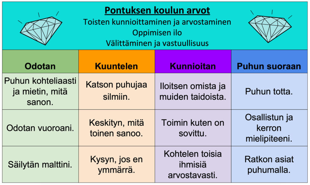 Pontuksen koulun painopisteet ovat yhteisöllisyys ja osallisuus