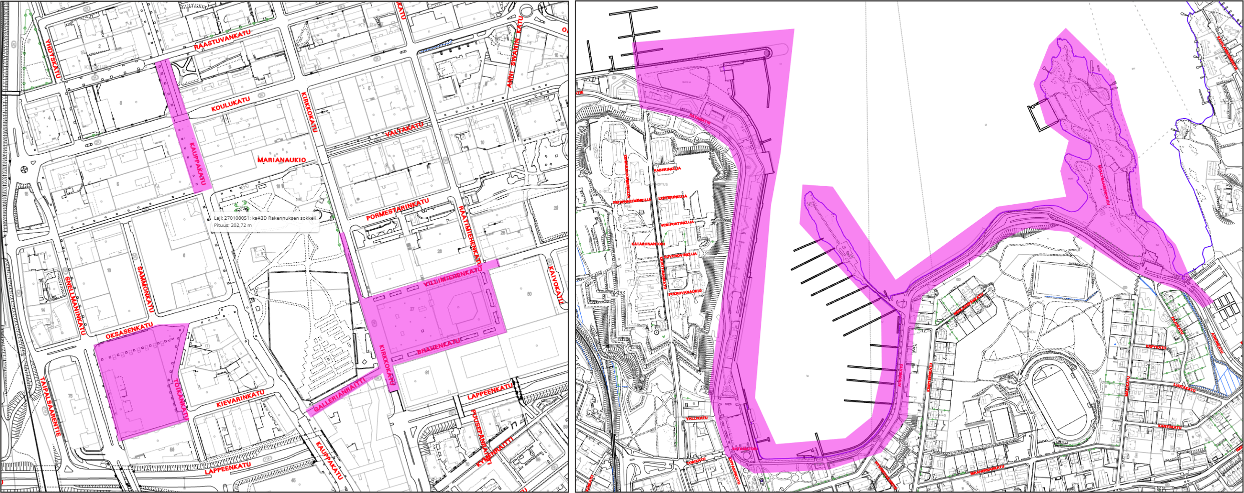 Onnettomuuksien vähentämiseksi sähköpotkulautojen maksiminopeus keskustan kävelykatu- ja torialueiden nopeusrajoitusalueella on 15 km/h. Tämä alue kattaa sataman alueen välillä Myllysaari- Linnoituksen kärki, kansalaistorin, kauppatorin ja Kauppakadun kävelyosuuden. Alla havainnollistava karttakuva näistä alueista.