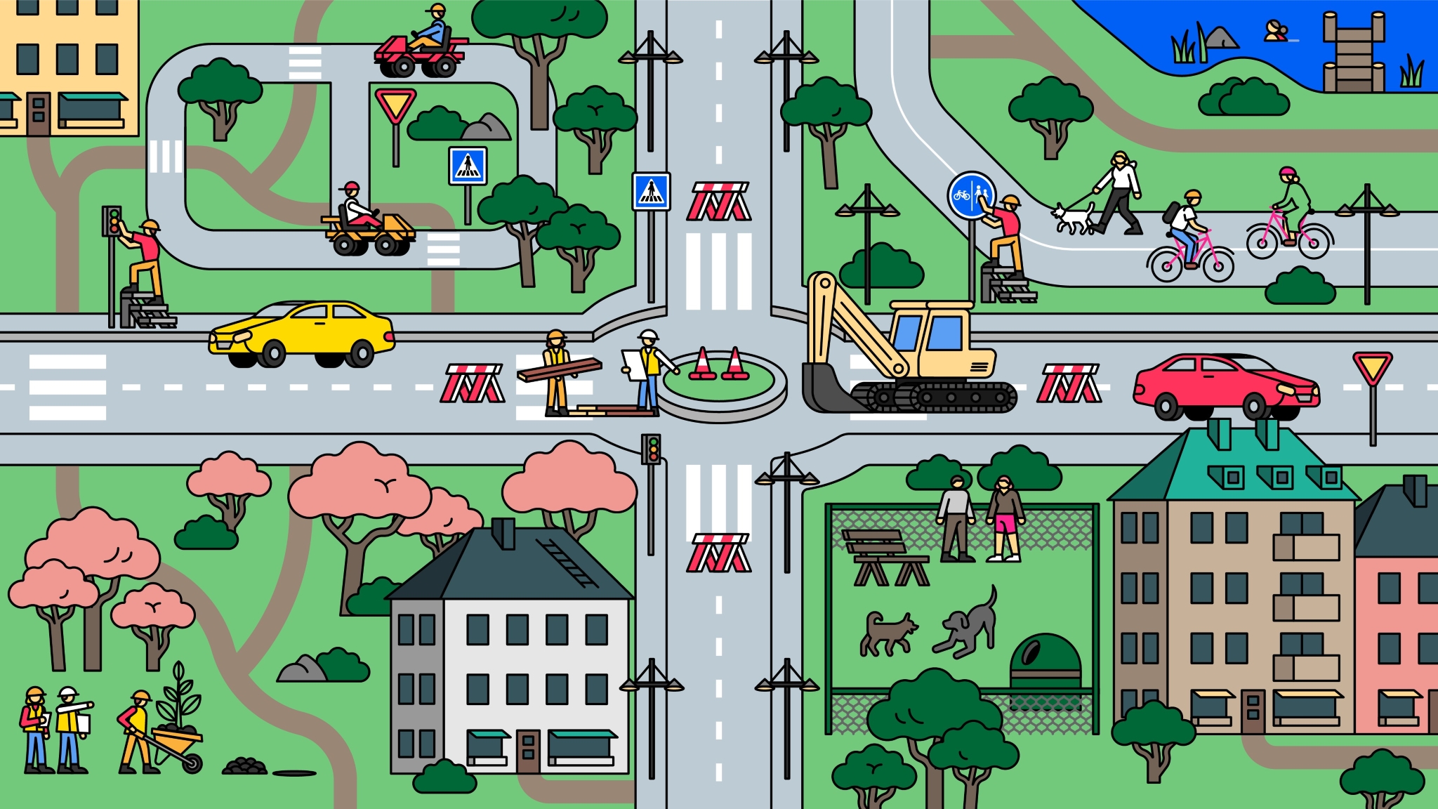 Palveluyksikkö hoitaa katu- ja viheralueiden yleissuunnittelun, liikennesuunnittelun, toimivuustarkastelut, katu- ja puistosuunnitelmat sekä rakennussuunnittelut. Kohteet rakennutetaan urakoitsijoilla ja palveluyksikön projektipäälliköt valvovat kohteiden rakentamista. Lisäksi teemme työmaiden turvallisuusvalvontaa, laadimme maiseman – ja luonnon hoitosuunnitelmia sekä kehitämme ja ylläpidämme kaupungin viheralue- ja puurekisteriä.